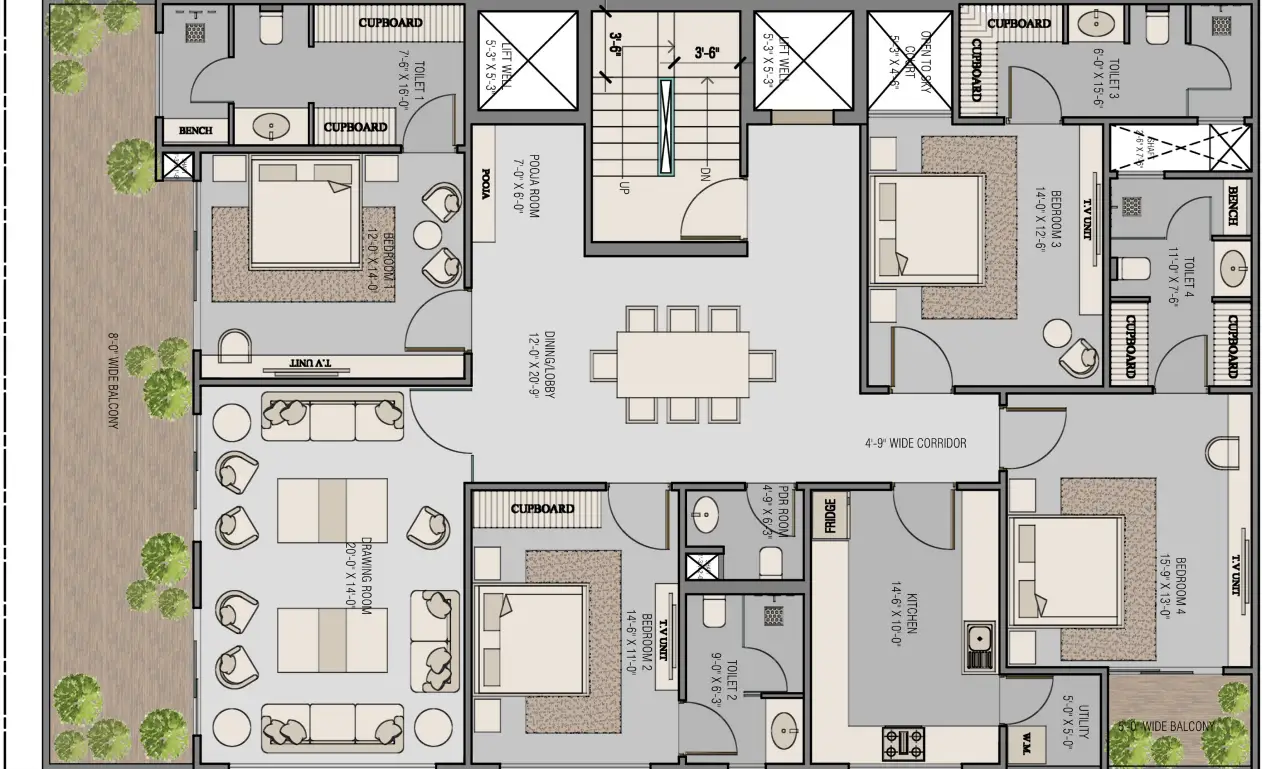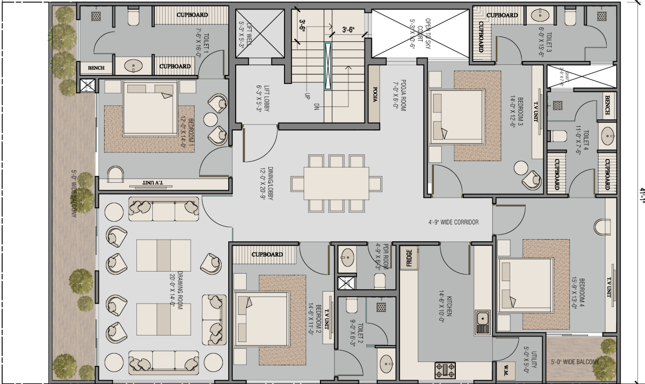 Your home begins here. A 4 BHK residence of approximately 2,700 sq. ft. where the drawing room, dining and balcony flow as one — and every bedroom has its own quiet corner.